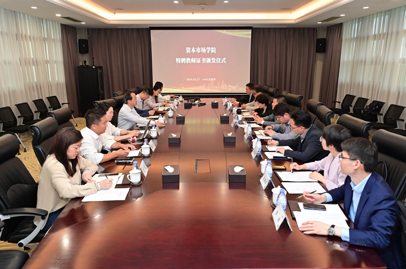 为进一步提升学院师资建设工作质量,优化外聘师资使用机制,学院启动“特聘教师”评选工作。3月27日,特聘教师证书颁发仪式在学院举行,来自证券公司、基金公司、律师事务所等机构的行业专家受聘为学院首批“特聘教师”。资本市场学院党委副书记、院长金立扬出席仪式并致辞,党委委员、副院长彭文革主持仪式。